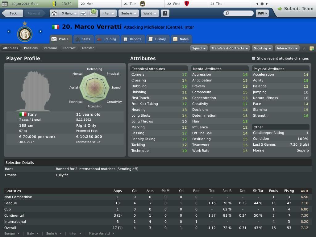 Thế thì nhằm nhò gì, game của tui cho Requelme Tut, mùa sau Determination đã là 19 rồi :haha:, mùa 2 cho De Rossi Tut thì Deter thành 20 luôn rồi :hut:.